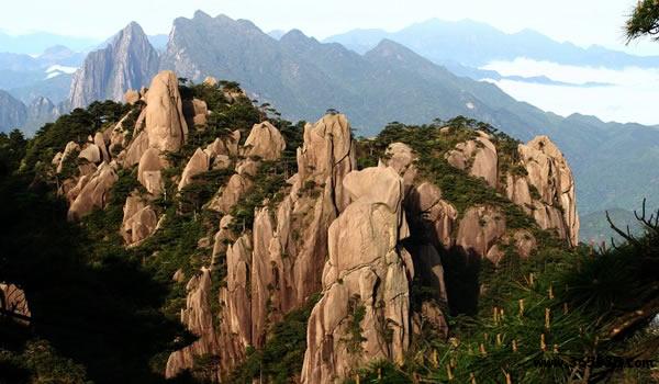 三清山:坐落于江西省東部門戶上饒市玉山縣與上饒德興市交接處。因玉京、玉虛、玉華“三峰峻拔,如三清列坐其巔”而得名。風(fēng)景區(qū)總面積229平方公里,最高峰玉京峰海拔1819.9米,為懷玉山脈的主峰。懷玉山因“天帝遺玉、山神藏焉”,風(fēng)光無限,別具精神而得名。三清山集天地之秀,納百川之靈,是華夏大地一朵風(fēng)景奇葩。她兼具“泰山之雄偉、黃山之奇秀、華山之險(xiǎn)峻、衡山之煙云、青城之清幽”,被國際風(fēng)景名家譽(yù)之為:“世界精品、人類瑰寶、精神玉境”。她以梯云嶺、南清園、萬壽園、西海岸、玉京峰、陽光海岸、三清宮、玉零觀等十大景區(qū)引人入勝。山的東南麓水連三清湖,山光水色,溶洞奇石,美不勝收。1988年8月列為國家重點(diǎn)風(fēng)景名勝區(qū),2008年7月列為世界自然遺產(chǎn)地,F(xiàn)為國家5A級(jí)風(fēng)景旅游區(qū)、國家自然遺產(chǎn)、國家地質(zhì)公園、全國愛國主義教育示范基地和全國文明風(fēng)景旅游區(qū)示范點(diǎn)。