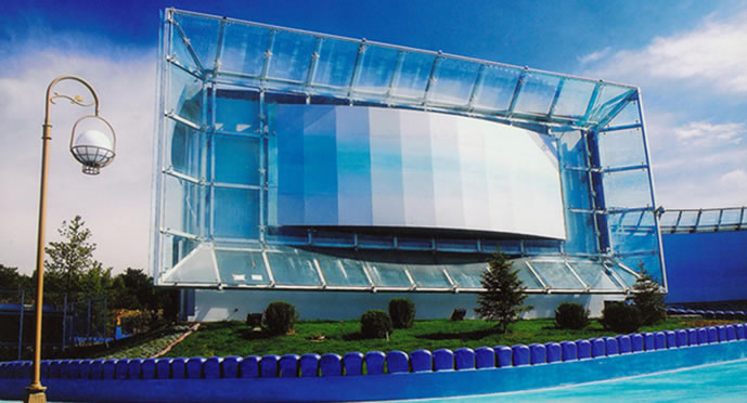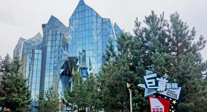巨幕影院,位于長影世紀城西南部,建筑外形酷似冰山,內部座位400個,設有高18米、寬25米熒幕,稱為巨幕影院,6.1聲道的立體效果,和立體特效影像相結合。