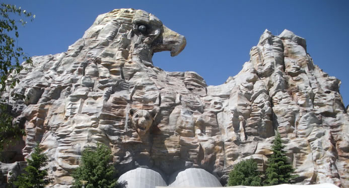 火山爆發(fā),位于長影世紀城北端,場景設計有瑪雅古城、溶巖、高山、火山洞口、驚雷、閃電、地震、山石滾動、城墻倒塌、龍卷風等。