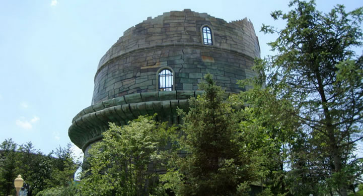 斗轉星移,位于長影世紀城西側,建筑外形為“倒種”的房子,是電影特技中光影展示,利用光影特效手段,揭示光影世界中的飛行奧秘。