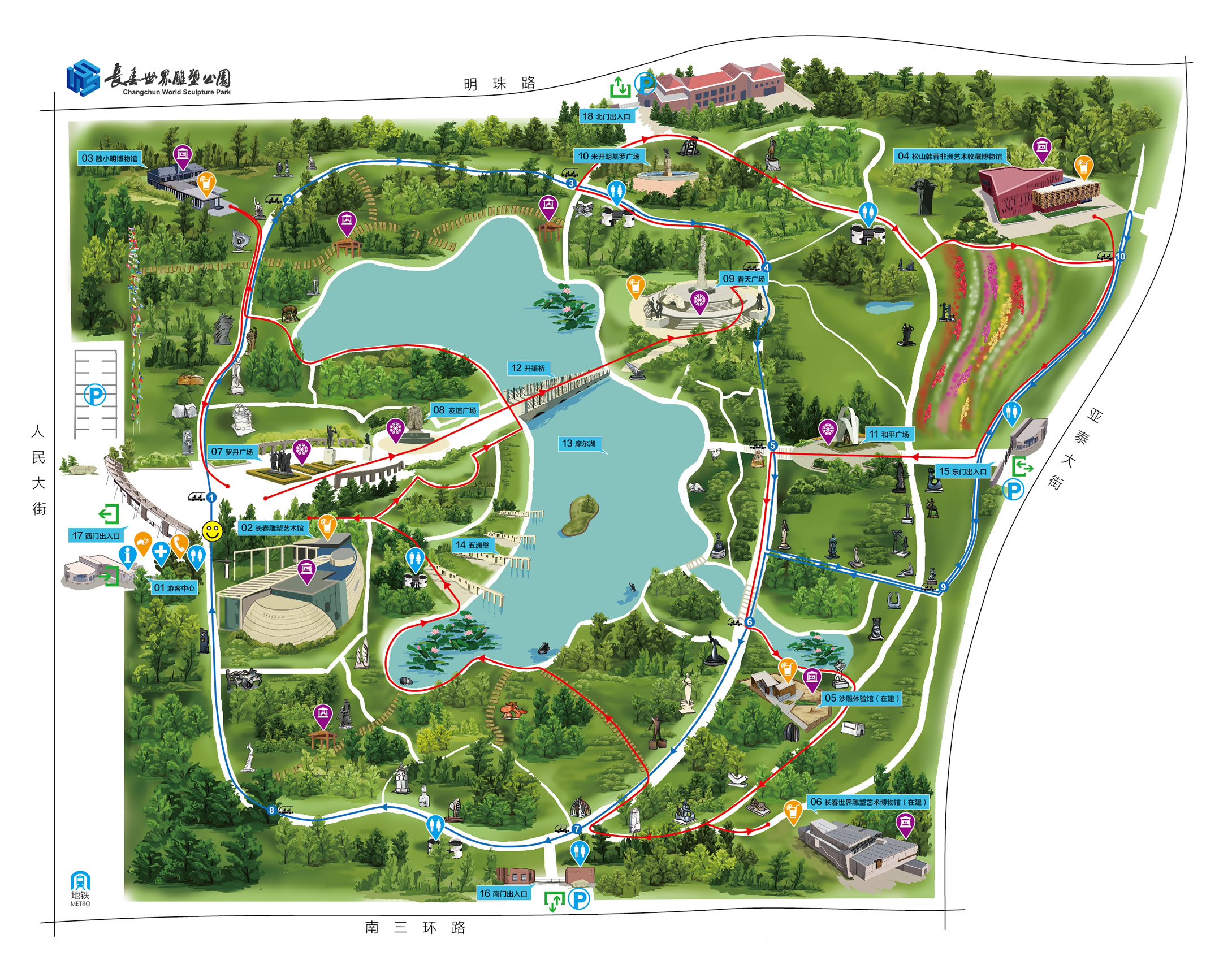 長(zhǎng)春世界雕塑園建設(shè)于2000年,于2003年9月5日正式對(duì)外開(kāi)放,是一座以自然山水與人文景觀相融為特色、以“友誼·和平·春天”為主題、以東西方文化藝術(shù)相融合為理念的大型現(xiàn)代雕塑藝術(shù)主題公園。