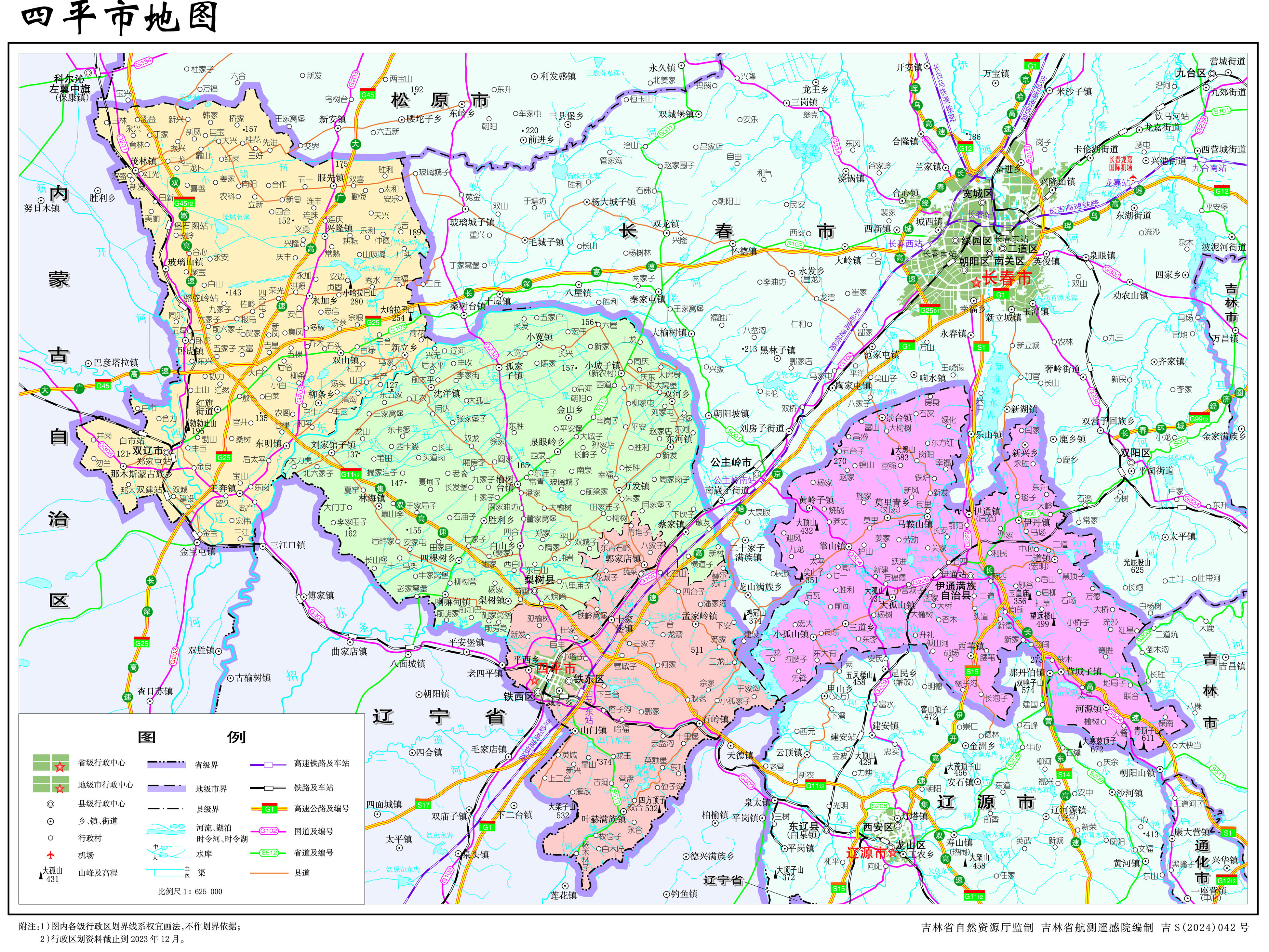 四平市轄2個(gè)市轄區(qū),2個(gè)縣,代管1個(gè)縣級市: