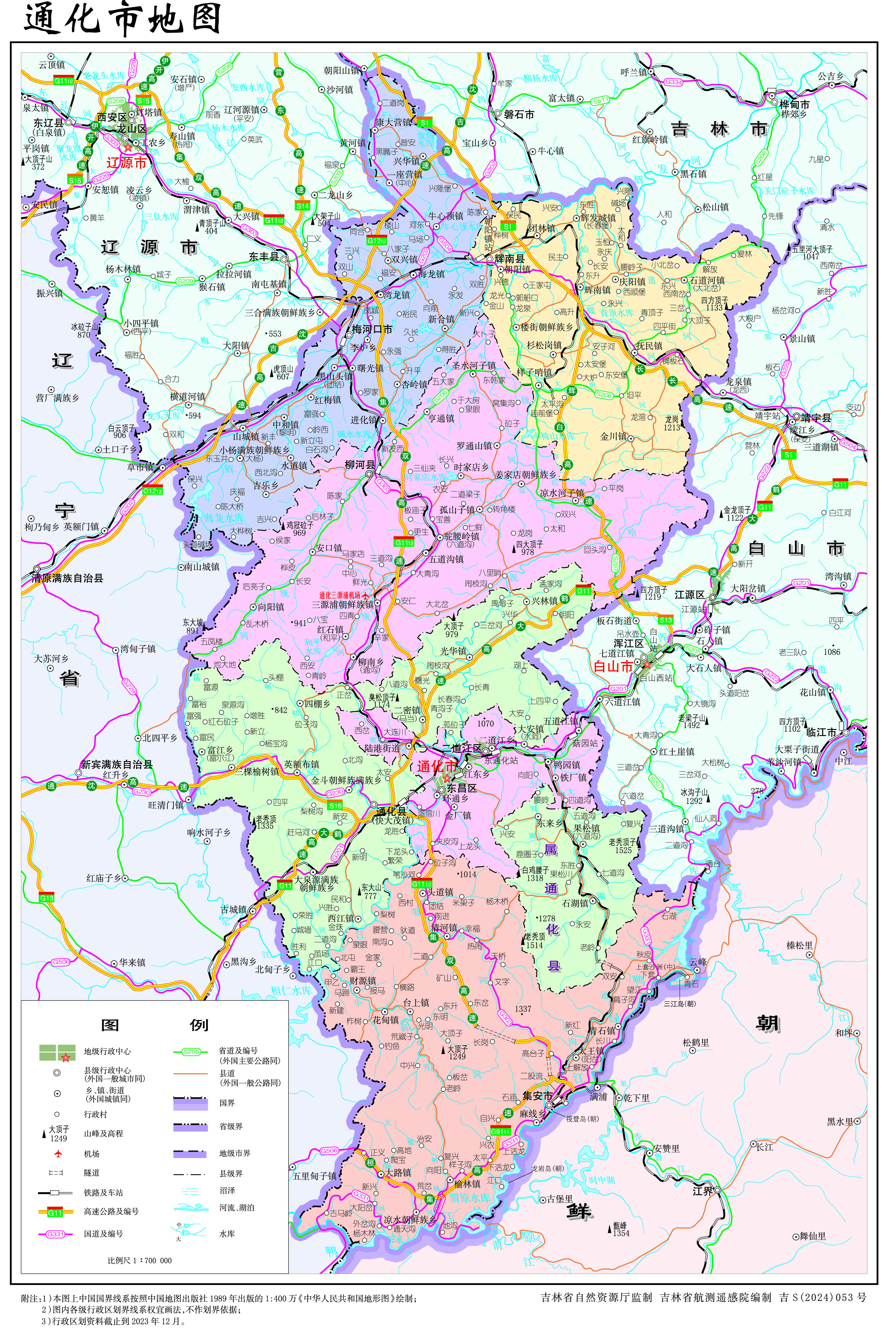 通化市轄2個市轄區(qū)、3個縣,代管2個縣級市: