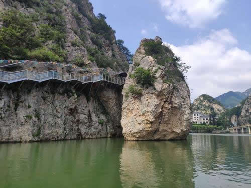 英納湖是冰峪溝的一個(gè)著名景點(diǎn),也是冰峪溝風(fēng)景區(qū)的精華所在,在冰峪溝旅游度假你不可不坐船游覽一下英納湖,在這湖面上游覽猶如進(jìn)入桂林仙境一般,兩岸峭壁秀絕,奇峰怪石林立。群峰倒影山浮水,無(wú)山無(wú)水不入神。