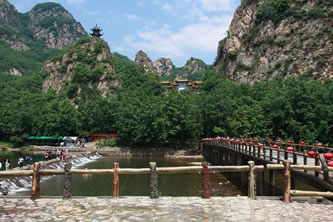冰峪溝風(fēng)景區(qū)位于莊河市北部山區(qū)仙人洞鎮(zhèn)境內(nèi),距大連市內(nèi)有240公里。景區(qū)規(guī)劃面積約有110平方公里,景區(qū)面積約47平方公里。龍華、攔馬、莢蓉三山屏蔽,英納、小峪兩河盤(pán)繞。這里林木參天,山清水秀,宛如江南風(fēng)景,素有“遼南小桂林”之美稱。冰峪溝的風(fēng)景既不同于桂林山水,又不同于黃山云海,以其獨(dú)特的風(fēng)格和韻味呈現(xiàn) 在東北遼南的一隅。