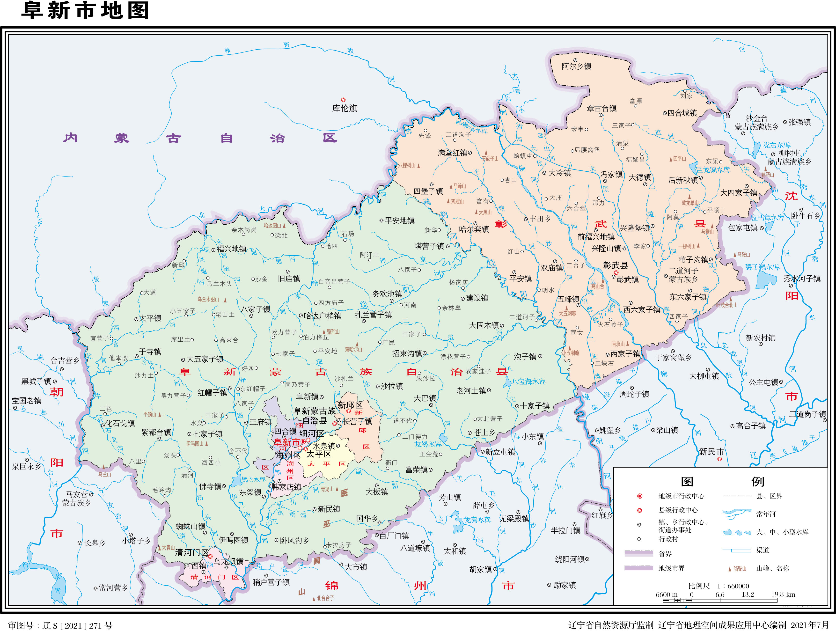 阜新市轄5個區(qū)、2個縣: