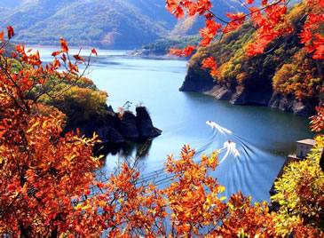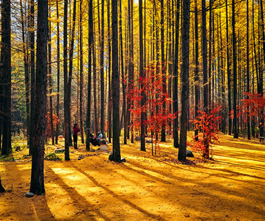 月臺(tái)子景區(qū)是主要的楓葉觀賞區(qū),每年本溪都開楓葉節(jié)。楓葉節(jié)是本溪走向全國、走向世界的橋梁,是本溪旅游事業(yè)蒸蒸日上的窗口。而關(guān)門山紅葉更是倍受贊譽(yù),每逢秋季,萬山紅遍層林盡染,紅紅火火的楓葉也會(huì)讓您的思緒隨之蕩漾,讓您不由得想起這樣一首詩:蕭蕭淺絳霞初碎,槭槭深紅雨復(fù)燃,染得千秋林一色,還家只當(dāng)是春天。伴隨著詩的優(yōu)美,我們到了月亮灣。2000年7月,我國著名的歌唱家彭麗媛曾經(jīng)到此拍攝音樂電視《世紀(jì)春雨》,這首歌曾在MTV大賽中榮獲金獎(jiǎng),大家隨著看到的就是森林浴場,您可以漫步林中,在石桌上小憩,在秋千上放歌,尋找兒時(shí)的樂趣。