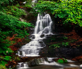到秋季,葉子就會(huì)變成紅色,鮮艷欲滴,看上去就像一個(gè)天然盆景。圣泉,大家請看,涓涓細(xì)流順石而下,無論多旱的天它都細(xì)水長流,當(dāng)?shù)仄、八十歲的老人都知道在以前的大旱年代,圣泉曾經(jīng)救過很多人的命,因此當(dāng)?shù)乩习傩瞻阉Q作救命水和觀音水。如果用瓶子接一下,就會(huì)看到瓶壁上結(jié)了一層霜,像剛從冰箱里拿出來的一樣,人們都說;農(nóng)夫山泉有點(diǎn)甜,其實(shí)關(guān)門山山泉更香甜?催^了圣泉的纏綿,再來看一看晶簾瀑布的壯觀。晶簾瀑布就像一個(gè)水晶的簾子倒掛,關(guān)于它還有一個(gè)動(dòng)人的傳說。瀑布兩側(cè)的山如刀削一樣,原來這兩座山是連在一起的,這邊也沒有瀑布的水。相傳,由于這兩座山相連在一起,山這面的百姓不得不到山那面的潭中取水,潭中有一條蛟龍,看到百姓擔(dān)水非常辛苦,于是有一天他竭盡全力指向大山,撞開了一條通道,河水就流了出來,人們的飲用水得到了解決,但是蛟龍卻因精疲力竭而死,人們?yōu)榱思o(jì)念這條蛟龍,便把大墻縫改為龍門峽,把這條瀑布稱為龍門峽的晶簾瀑布,下面的潭水稱為龍涎潭。