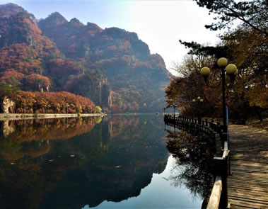 這里的主要景點(diǎn)有碧波蕩漾的五彩湖、陡峭秀麗的寶塔峰,栩栩如生的雄獅鎮(zhèn)岳等等。五彩湖,它是98年修建的一個(gè)人工湖,平均水深3.6米,最深處可達(dá)7.5米,為什么叫五彩湖呢?每到秋季,黃的柞樹、綠的青松、紅的楓樹,它們的倒影映襯在水里邊,呈現(xiàn)出五彩繽紛的顏色,故比得名五彩湖。