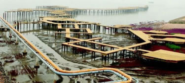 棧橋曲折綿長與海相接、與天相連,像一艘大船正要揚帆起航。游客漫步于上觀賞兩側的紅灘綠葦、聆聽候鳥的百囀千聲、感受大海的波瀾壯闊,仿佛乘舟依水而行,每每流連忘返。身臨其境的讓人感受到“落霞與孤鶩齊飛,秋水共長天一色”的唯美意境。