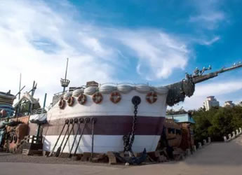 海盜村以海盜和海盜景物的卡通造型,對所有建筑,游樂設(shè)施、休閑場所,景觀進(jìn)行包裝。一期工程中的海盜船,是國內(nèi)僅有的架設(shè)在海灣海平面上的海盜船。它的支點(diǎn)高13.5米,最大擺角120度,每船可以乘游客40人。
