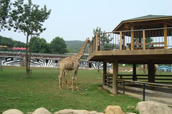 野生放養(yǎng)園的動(dòng)物全在外邊放養(yǎng),游客可以乘坐觀光電平車游覽,或者步行觀賞。依次經(jīng)過的是草食動(dòng)物園、熊園、虎園、獅園等園區(qū)。還有那些在林間的水潭邊跳躍的小鹿,悠閑地散步的長(zhǎng)頸鹿。非洲野狗,又如三色犬,體形很小,只有一米高,但卻兇猛異常,可以捕食羚羊、斑馬等哺乳動(dòng)物,買只獵物投食,瘋狂的野狗爭(zhēng)相奪食,異常血腥。(建議步行游覽即可,時(shí)間約50分鐘)亞洲食草動(dòng)物區(qū)。有牦牛、駱駝、矮馬、白唇鹿、馬鹿、田鹿、梅花鹿、羊駝、犀牛等眾多動(dòng)物,它們和睦相處、互不侵犯各怡然自得。游客可以拿點(diǎn)青草樹葉之類的食物,和它們近距離相處喂食。