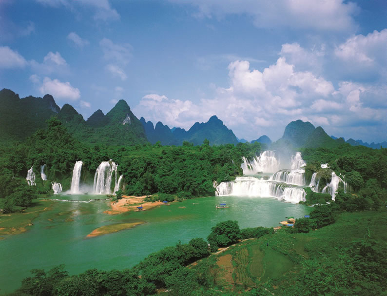 - 看點(diǎn):壯族英雄儂智高紀(jì)念地,遠(yuǎn)眺越南村落,古寺飛檐與瀑布同框。