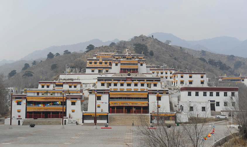五當(dāng)召,蒙古語(yǔ)“五當(dāng)”意為“柳樹(shù)”;原名巴達(dá)嘎?tīng)栒伲卣Z(yǔ)“巴達(dá)嘎?tīng)?rdquo;意為“白蓮花”,“召”為“廟宇”之意。五當(dāng)召位于內(nèi)蒙古自治區(qū)包頭市石拐區(qū)東北約45公里的吉忽倫圖蘇木五當(dāng)溝內(nèi)的大青山深處。始建于清康熙年間(公元1662年—1722),乾隆十四年(公元1749年)重修,賜漢名廣覺(jué)寺。第一世活佛羅布桑加拉措以西藏扎什倫布寺為藍(lán)本興建,經(jīng)過(guò)康熙、乾隆、嘉慶、道光、光緒年間的多次擴(kuò)建,逐步擴(kuò)大至今日規(guī)模。因建在五當(dāng)溝的一座叫做敖包山的山坡上,所以通稱(chēng)其名為五當(dāng)召。五當(dāng)召依地勢(shì)面南而建。有大小殿宇、經(jīng)堂、僧舍2500余間,占地300多畝,分布在1.5公里長(zhǎng)的山坡上。它是一幢層層依山壘砌的白色建筑,群山環(huán)繞,為蒼松翠柏掩映,雄渾壯觀。 它與西藏的布達(dá)拉宮、青海的塔爾寺和甘肅的拉卜楞寺齊名,是中國(guó)藏傳佛教的四大名寺之一和內(nèi)蒙古自治區(qū)最大藏傳佛教寺院。