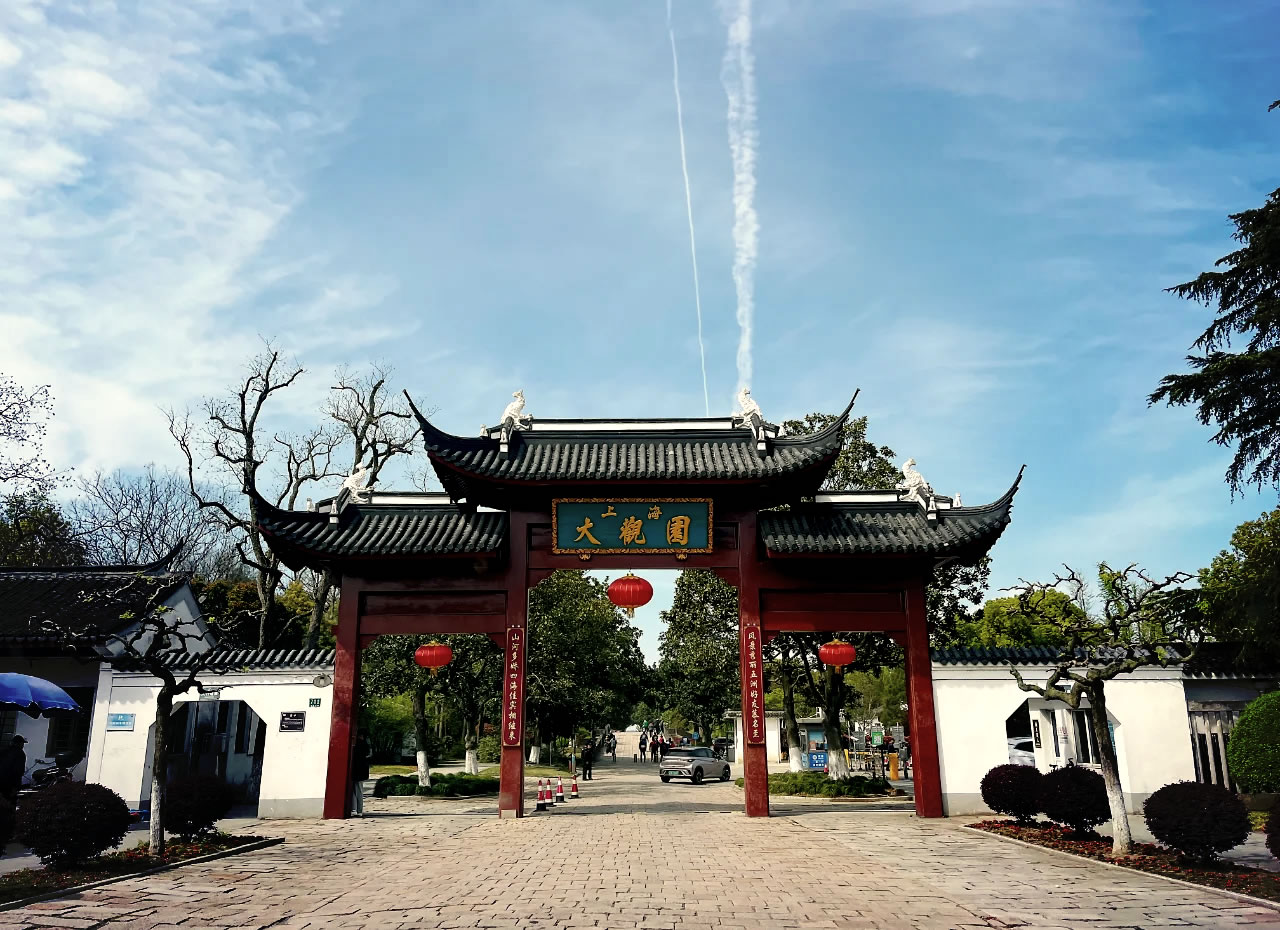 上海大觀園位于上海市青浦區(qū),坐落于淀山湖西側,距離上海市區(qū)65公里,占地135畝,建筑面積約8000平方米。原稱淀山湖風景游覽區(qū),1991年改稱上海大觀園,占地也擴大到1500畝,是上海市精神文明建設的重點單位,經過多次的整修擴建,是一個集觀光、旅游、休閑的綜合性游樂園。上海大觀園是根據中國清代名著《紅樓夢》的描寫設計而成的大型仿古園林。園林建筑群由上海園林院梁友松主持規(guī)劃設計。 總體布局以大觀樓為主體,由“省親別墅”石牌坊、石燈籠、沁芳湖、體仁沐德、曲徑通幽、宮門、“太虛幻境”浮雕照壁、木牌坊等形成全園中軸線。西側設置怡紅院、櫳翠庵、梨香院、石舫。東側設置瀟湘館、蘅蕪院、蓼風軒、稻香村等20多組建筑景點。