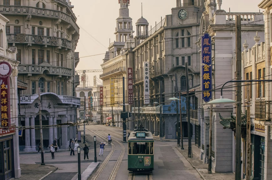 - 南京路:重現(xiàn)十里洋場的繁華景象,有軌電車穿梭其間,街邊復古店鋪林立,仿佛穿越回30年代的老上海。