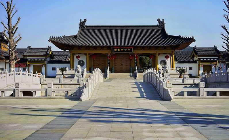 中華孝道園坐落于全國十大旅游名片之一的常州市武進太湖灣旅游度假區(qū),占地860畝,面朝太湖,背依蓼莪山脈,位于太湖七灣中最美麗的一灣,空氣質(zhì)量等級為一 級,是江南一帶的“世外桃源”。園區(qū)以距今1600多年歷史的古跡——蓼莪禪寺為依托,以弘揚孝道精神為主旨,是融尋根祭祖、朝山禮佛、旅游觀光和覺悟教 育于一體的綜合景區(qū)。其主要景點和服務設施為蓼莪禪寺、正法明大殿、石窟觀音、妙音寶塔、先祖廟堂、中華孝道博物館、思恩廣場、凈心池、普光山莊等。