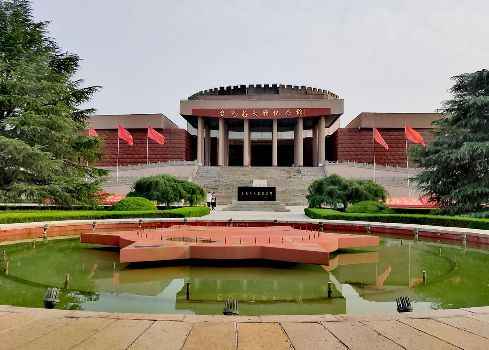 棗臺(tái)兒莊大戰(zhàn)紀(jì)念館,位于山東省棗莊市臺(tái)兒莊區(qū)城區(qū)西南郊,是為了紀(jì)念抗日戰(zhàn)爭(zhēng)初期著名的臺(tái)兒莊戰(zhàn)役而修建,于1992年由臺(tái)兒莊區(qū)人民政府籌資建成,1993年4月8日正式對(duì)外開(kāi)放,后經(jīng)擴(kuò)建,占地面積達(dá)96畝,建筑面積1.2萬(wàn)平方米。臺(tái)兒莊大戰(zhàn)紀(jì)念館由紀(jì)念碑、陳列館、影視館、全景畫館、戰(zhàn)地記者館、無(wú)名英雄墓、國(guó)防教育園等部分組成,并設(shè)有臨時(shí)展廳、多功能報(bào)告廳和紅色圖書室。展出文物、圖片和史料2000余件,通過(guò)歷史文物、歷史圖片、文獻(xiàn)資料與各類輔助陳列手段的有機(jī)結(jié)合,全景再現(xiàn)臺(tái)兒莊大戰(zhàn)中愛(ài)國(guó)將士報(bào)效祖國(guó)的壯舉。