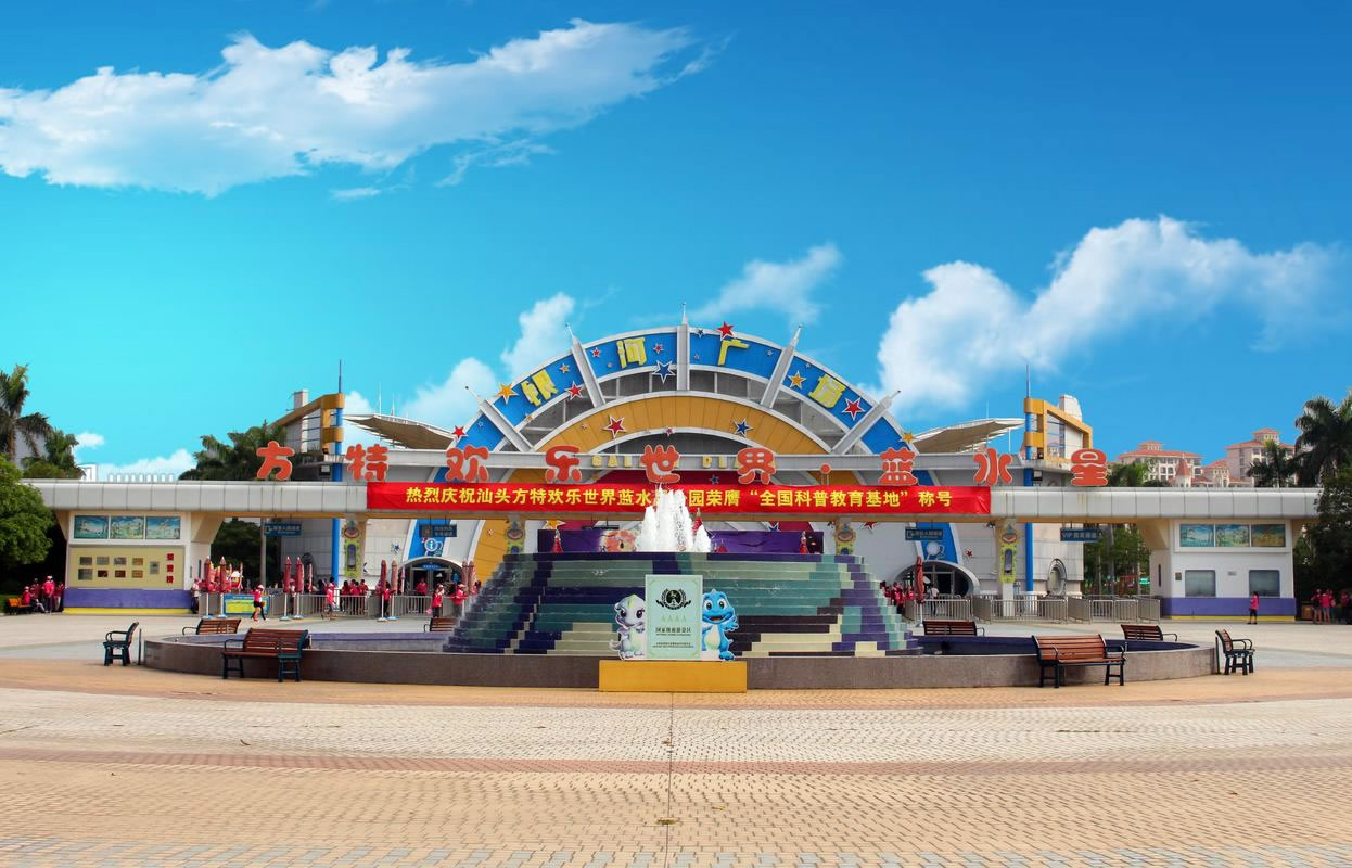 汕頭方特歡樂世界·藍水星主題公園,位于廣東省汕頭市龍湖區(qū)泰星莊泰星路12號,是粵東地區(qū)第一個以科幻為題材的主題公園。汕頭方特歡樂世界·藍水星主題公園由銀河廣場、太空世界、悟空歸來、西部傳奇、恐龍半島、海螺灣、嘟嚕嘟比農(nóng)莊、兒童王國、水世界九個主題項目組成,含景觀游樂項目近100項。2012年,汕頭方特歡樂世界·藍水星主題公園被中國旅游局評為國家AAAA級旅游景區(qū);2015年,被中國科學技術協(xié)會評為全國科普教育基地。