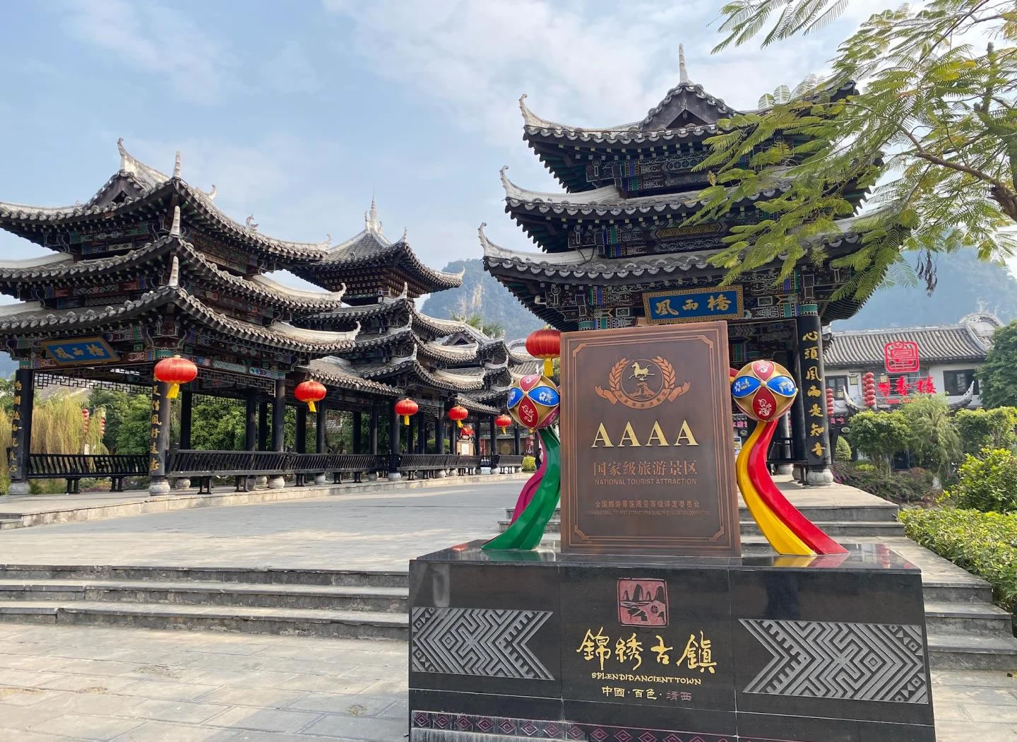 錦繡古鎮(zhèn),位于廣西壯族自治區(qū)百色市靖西市。古鎮(zhèn)一期工程于2018年12月26日正式開(kāi)街,依托靖西山水資源和壯族文化,以復(fù)興城市文脈為主線,打造壯族文化傳承載體和旅游集散中心。項(xiàng)目涵蓋文化體驗(yàn)、休閑娛樂(lè)、餐飲住宿等功能,建筑融入燈籠、銅鼓等壯族元素,具有濃厚民俗特色。古鎮(zhèn)建筑融合壯族民俗元素,如雕梁畫(huà)棟、銅鼓、繡球等,分為文旅商業(yè)街區(qū)、小吃燒烤區(qū)、主題客棧區(qū)等。以壯族文化、邊境文化、生態(tài)養(yǎng)生為主題,提供“吃住行游購(gòu)?qiáng)?rdquo;全方位體驗(yàn)。古鎮(zhèn)建成后素有“小桂林”之稱,描繪出小橋流水的壯鄉(xiāng)畫(huà)卷。