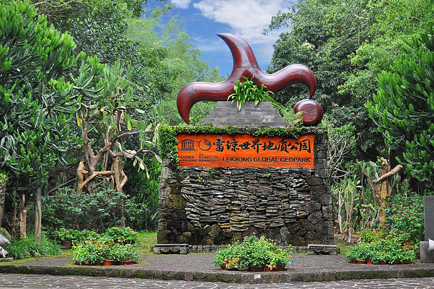 中國雷瓊世界地質(zhì)公園位于中國南端,地處廣東省湛江市雷州半島(雷)和海南省?谑校ō偅,由湛江園區(qū)、?趫@區(qū)與瓊州海峽組成,面積為3050平方千米。公園地區(qū)多期次的火山噴發(fā)形成的獨特的地理、地質(zhì)環(huán)境,造就了公園廣闊的玄武巖臺地、豐富的火山地貌以及火山巖海蝕地貌與海積地貌等地質(zhì)遺跡景觀,也造就了當?shù)鬲毺氐幕鹕轿幕。公園以?隈R鞍嶺等為代表的第四紀火山帶聞名于世,更有以湖光巖為代表的瑪珥湖堪稱研究全球古氣候、古環(huán)境變化的“天然年鑒”。