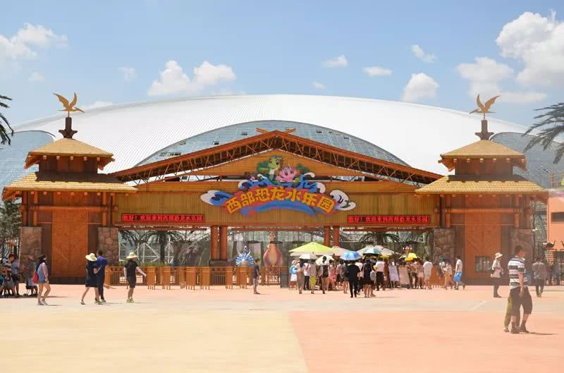 西部恐龍水樂園位于蘭州新區(qū)鳳凰山路1555號,總建設用地約2200畝,包含室內(nèi)外兩大水樂園區(qū)域。室內(nèi)水樂園采用28℃恒溫系統(tǒng)實現(xiàn)全年運營,配備歡樂島、加勒比海灘等17項國際化游樂設施;室外區(qū)域設有造浪池、叢林旋渦等12組水上游樂設備。園區(qū)以恐龍為主題,布置仿真模型及恐龍化石展品,兼具科普教育與娛樂功能。