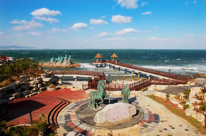 天馬廣場(chǎng)→海水浴場(chǎng)→獐島→御筆苑→秦風(fēng)崖→海島來(lái)信→海島日記→蓮花夕照(含日落)