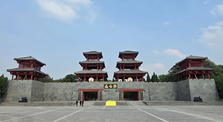 函谷關(guān)歷史文化旅游區(qū)位于河南省靈寶市,由靈寶市委、市政府投資5.89億元打造,距靈寶市區(qū)13公里,連霍高速靈寶出口不足2公里,占地面積5000畝,以函谷關(guān)軍事要塞遺址和老子著《道德經(jīng)》文化遺存為核心,形成融軍事文化、道家文化于一體的游覽體系。景區(qū)包含關(guān)樓、道德天書(shū)、太初宮等50余處景點(diǎn),現(xiàn)存秦漢風(fēng)格關(guān)樓印證其“車不方軌,馬不并轡”的險(xiǎn)要地形,2018年入選“中國(guó)黃河50景”,2021年獲評(píng)河南省中小學(xué)研學(xué)旅行實(shí)踐基地,2025年升級(jí)為國(guó)家5A級(jí)旅游景區(qū)。景區(qū)近年推出《函谷盛境》水上鐵花秀、《楚漢爭(zhēng)關(guān)》《大秦烽云》實(shí)景演出及《問(wèn)道函谷》夜游項(xiàng)目,開(kāi)展“紫氣東來(lái)·問(wèn)道函谷”文化藝術(shù)周活動(dòng)。該關(guān)始建于西周,為歷史上建制最早的雄關(guān)要塞,發(fā)生大小戰(zhàn)役200余次,其中16次影響中國(guó)歷史進(jìn)程。周敬王四年(公元前516年)老子于此撰寫(xiě)《道德經(jīng)》,天寶元年(742年)因“函谷靈符”事件改桃林縣為靈寶,F(xiàn)存紫銅老子圣像高33.3米,太極圣湖水域面積達(dá)1400畝。