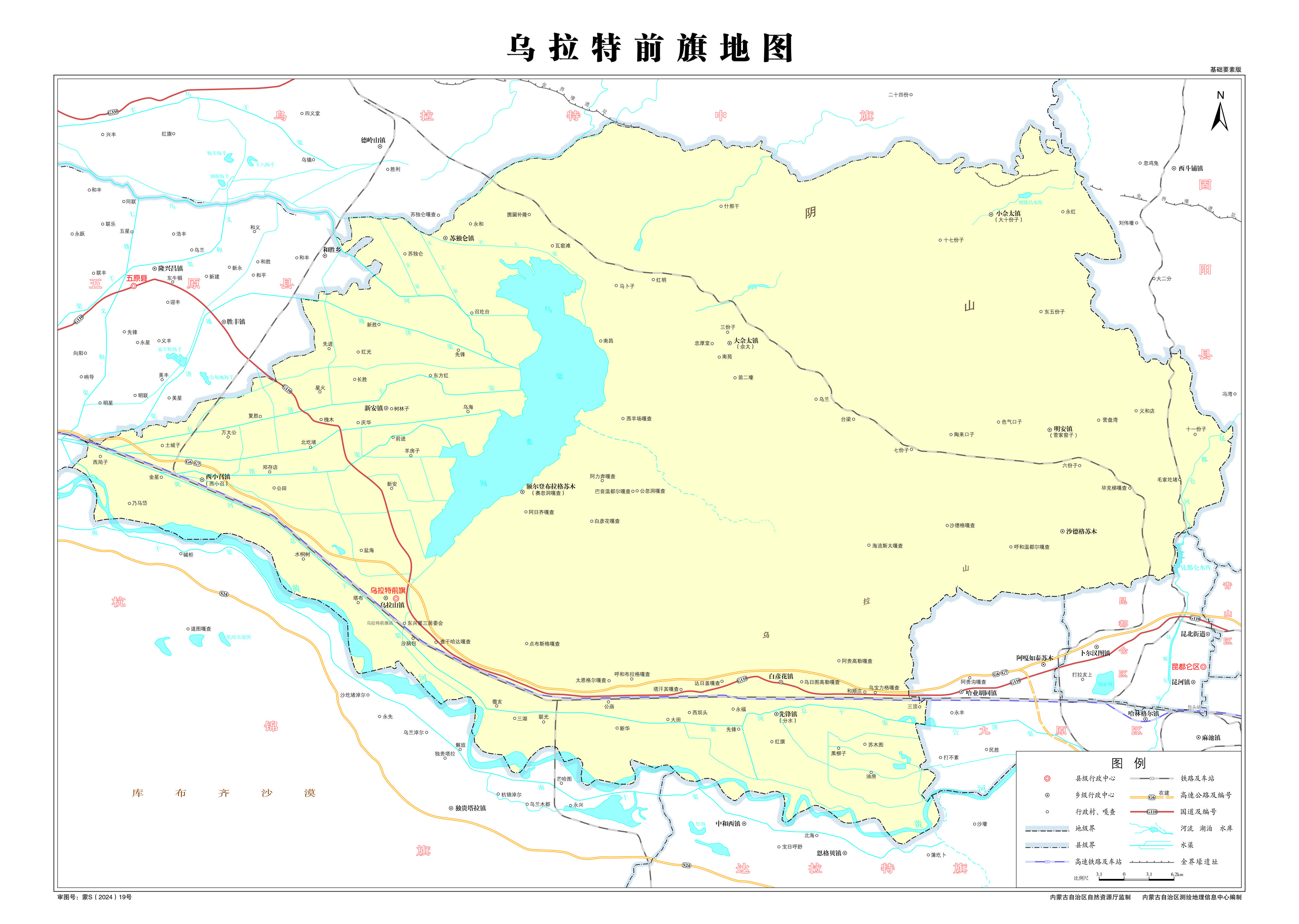 鎮(zhèn):烏拉山鎮(zhèn)、呼和布拉格鎮(zhèn)、巴音花鎮(zhèn)、新安鎮(zhèn)、大佘太鎮(zhèn)、朝陽鎮(zhèn)、西小召鎮(zhèn)、先鋒鎮(zhèn)