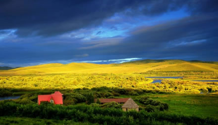 春季,五月的興安嶺上杜鵑花爭奇斗艷,尚未消融的皚皚白雪映著火紅的杜鵑花,是難得一見的人間圣景;夏季的呼倫貝爾氣候宜人,平均氣溫在16℃——21℃之間,是避暑的最佳去處,那醉人的綠色招引著你,站在草原上,看藍天上云卷云舒,心胸就會像草原一樣廣闊。鄂倫春族篝火節(jié)、草原那達慕、鄂溫克族瑟賓節(jié)、祭敖包等民族節(jié)日異彩紛呈。秋季奪人耳目的是那林海的秋色,聽林中松濤陣陣,賞亭亭玉立的白樺,到四方山、達爾濱羅看日出日落,大自然的美景令人留連忘返;走近冬天的呼倫貝爾,一個冰雕玉砌的世界,冰雪節(jié)的圣會,讓您充分領(lǐng)略青松傲雪、暢游林海雪原的豪氣和由冰峰、雪嶺、冰雕構(gòu)成的一派雪韻風情。