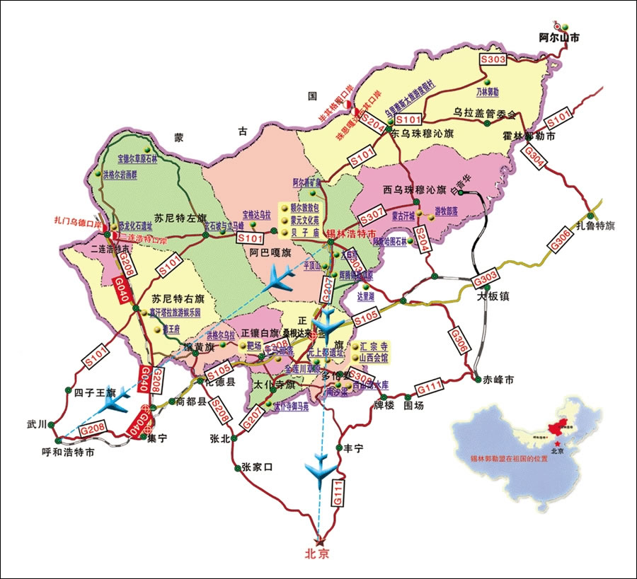 1098 公里;東鄰內(nèi)蒙古自治區(qū)赤峰市、通遼市、興安盟,西接烏蘭察布盟,南與河北省承德、張家口毗鄰,總面積 20.3 萬平方公里,是距北京最近的邊疆少數(shù)民族地區(qū)。全盟轄