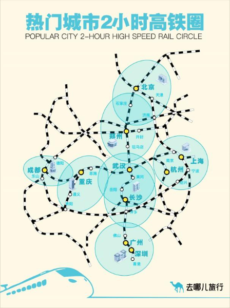 從去哪兒火車票預(yù)約情況來看,2小時高鐵圈內(nèi)仍是旅客出游的主要目的地。北京2小時高鐵圈內(nèi),熱門目的地為天津、濟(jì)南、石家莊、秦皇島、大同;上海2小時高鐵圈,熱門目的地為杭州、蘇州、南京、湖州、寧波。