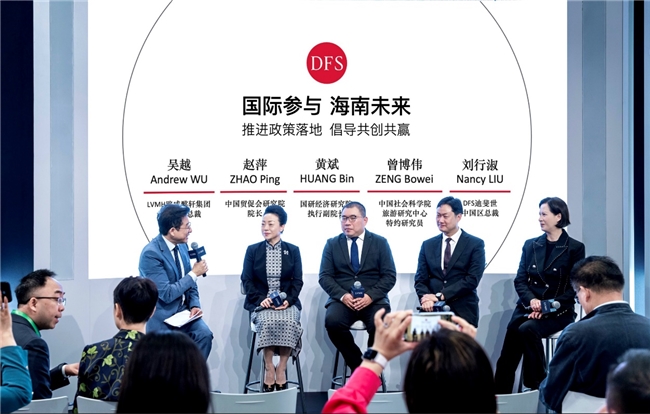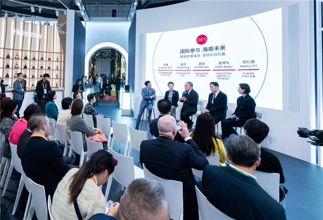 (2024年11月6日,上海)在第七屆中國國際進(jìn)口博覽會上,在LVMH路威酩軒集團(tuán)的展廳現(xiàn)場,集團(tuán)旗下全球領(lǐng)先的奢侈品旅游零售商DFS迪斐世舉辦了一場主題為“國際參與、海南未來,推動政策落地,倡導(dǎo)共創(chuàng)共贏”的專題研討會。LVMH路威酩軒集團(tuán)大中華區(qū)總裁吳越、DFS迪斐世中國區(qū)總裁劉行淑、中國貿(mào)促會研究院院長趙萍、國研經(jīng)濟(jì)研究院執(zhí)行副院長黃斌、中國社會科學(xué)院旅游研究中心特約研究員曾博偉等專家、學(xué)者、企業(yè)代表齊聚一堂,共同深入探討,推動政策落地,倡導(dǎo)共創(chuàng)共贏;凝聚開放共識,以國際參與打造具有世界影響力的中國特色自貿(mào)港,助力海南未來成為新時代中國改革開放的示范地。海南國際經(jīng)濟(jì)發(fā)展局局長唐華一行及三亞市投資促進(jìn)局局長黃琍珠也出席了本次活動。