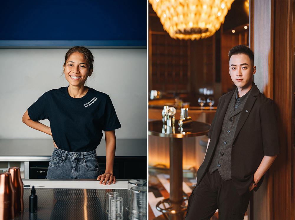 Sasha (左) 是Fura 的合伙人及調(diào)酒師,她一向追尋以創(chuàng)新的方式融合各種食材,制作出風(fēng)味獨(dú)特又環(huán)保的飲品。 澳門新濠影匯W酒店首席調(diào)酒師Samio (右) 獨(dú)具匠心,致力于以不同構(gòu)思設(shè)計(jì)出令人驚嘆的作品,期望每一杯飲品都能為賓客帶來(lái)難忘的體驗(yàn)。