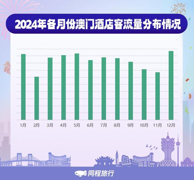 澳門回歸25周年慶;顒訝I造的節(jié)日氛圍吸引了大量內(nèi)地游客的關注。平臺數(shù)據(jù)顯示,2024年1至12月份澳門當?shù)鼐频杲哟齼?nèi)地游客的高峰時段出現(xiàn)在1月份和12月份,其中尤以12月份客流量最大,占全年總客流量近10%,占比較往年有所上升。