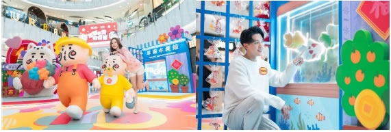 “貨架”上掛滿一包包金魚小袋,讓人瞬間仿若置身于金魚街。厚面水族館萌趣十足的金魚在水中自在游動,傳遞著新春金玉滿堂的祝福。悠閑逛完金魚街的厚面父子,大手拉小手開心來到MOKO 準備買買買。