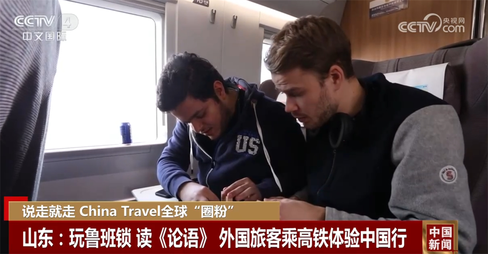 隨著過(guò)境免簽外國(guó)人在境停留時(shí)間延長(zhǎng)為240小時(shí)等政策的實(shí)施,便捷的中國(guó)高鐵也成為了越來(lái)越多外國(guó)游客游覽中國(guó)的一種選擇。在青島開往濟(jì)南東方向的G6910次列車上,來(lái)自挪威的旅客哈蘭正興趣盎然地和來(lái)自埃及、同樣喜歡中國(guó)傳統(tǒng)建筑榫卯結(jié)構(gòu)的同伴易卜拉欣一起研究魯班鎖的玩法。
