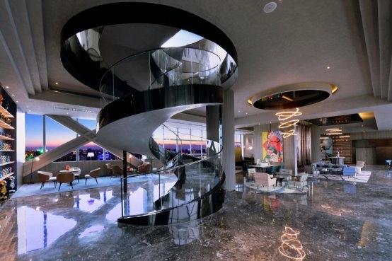 高空視野:31樓全透明云端餐廳可俯瞰人民南路車水馬龍,180°落地窗將城市天際線化為流動畫卷;旋轉(zhuǎn)樓梯以光影裝置串聯(lián)空間敘事,每一步皆成風(fēng)景。