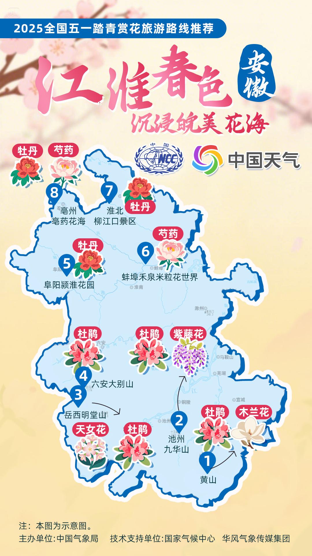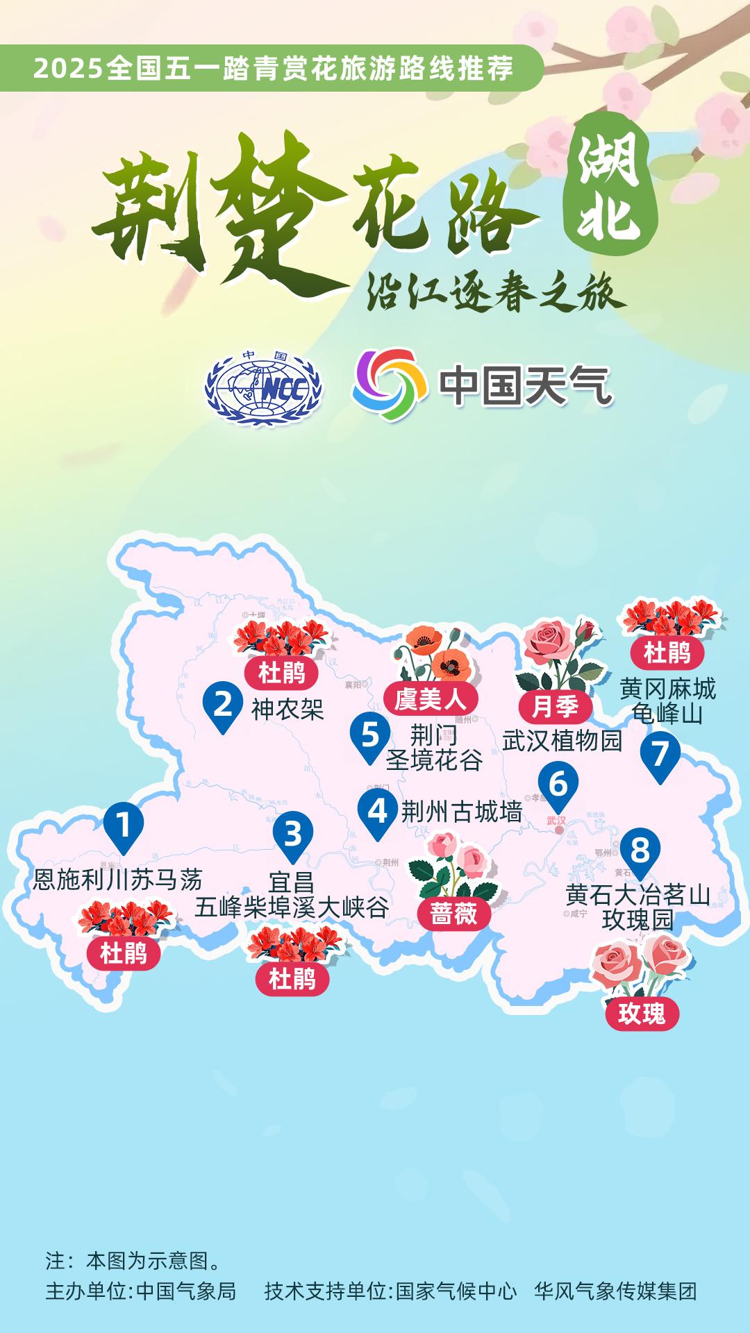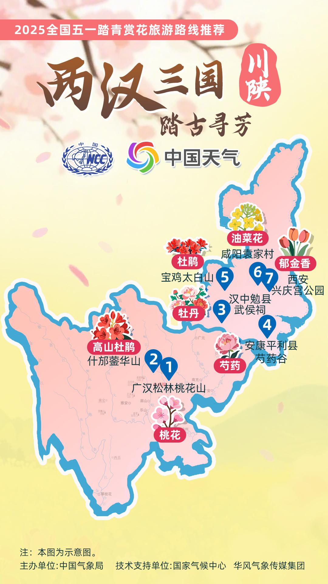 正值杏花、杜鵑花等春花盛放時節(jié),中國氣象局針對全國景點主要花品,對其生長積溫和物候期進行關聯(lián)性分析,建立多種花品的最佳觀賞期預報模型,提供賞花預報服務。在此基礎上,國家氣候中心、華風氣象傳媒集團依據(jù)歷史氣候資料和今年氣候預測,參考花期模型預報結果,結合區(qū)域地理分布、小氣候特征和旅游景點等信息,推出4月下旬至5月上旬適宜踏青賞花的線路。
