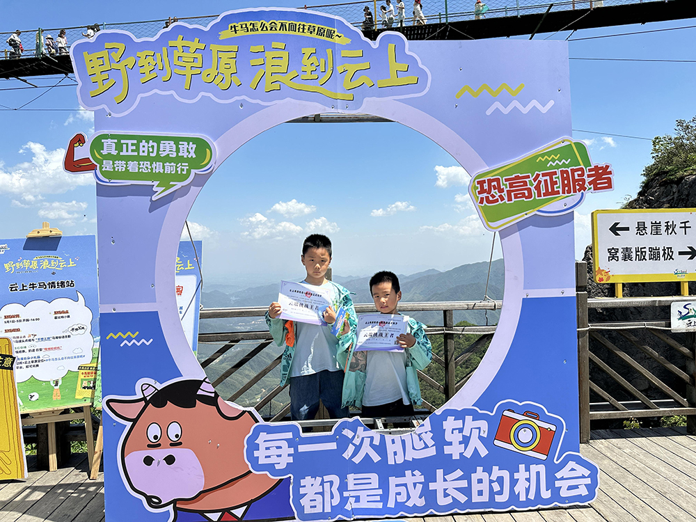 懸崖秋千、窩囊蹦極、飛拉達(dá)·懸崖穿越等六大極限項(xiàng)目挑戰(zhàn)賽正如火如荼進(jìn)行中。不少游客在“步步驚心”高空索道上顫抖前行,卻仍高舉手機(jī)記錄驚險(xiǎn)瞬間。完成挑戰(zhàn)者可現(xiàn)場(chǎng)領(lǐng)取“勇氣證書”。