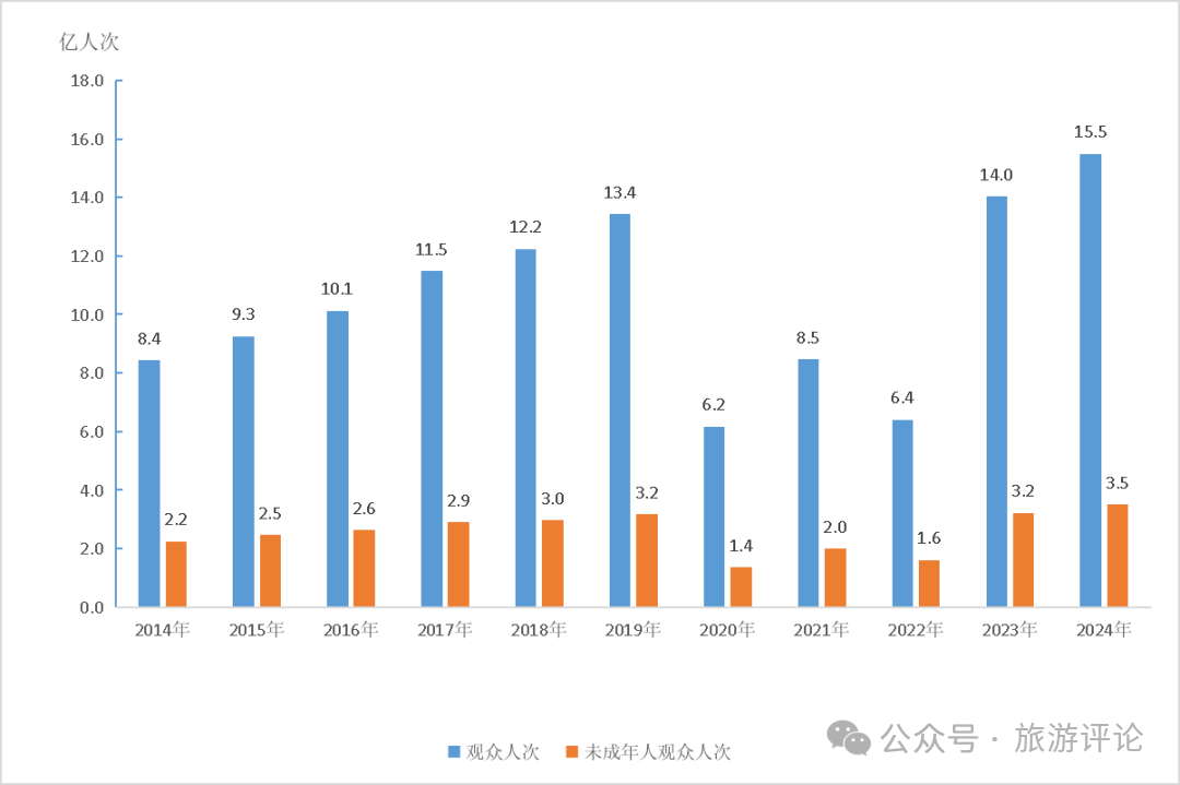 2014—2024年全國文物機(jī)構(gòu)接待觀眾人次及未成年人觀眾人次