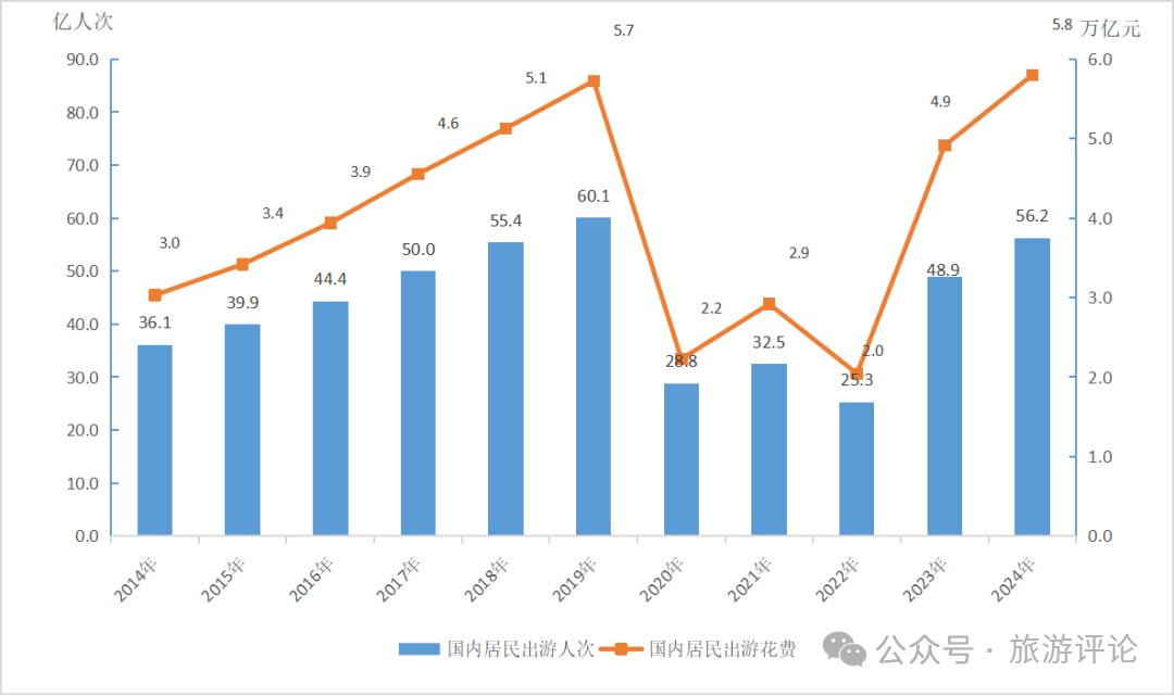 2014—2024年國內(nèi)旅游發(fā)展情況