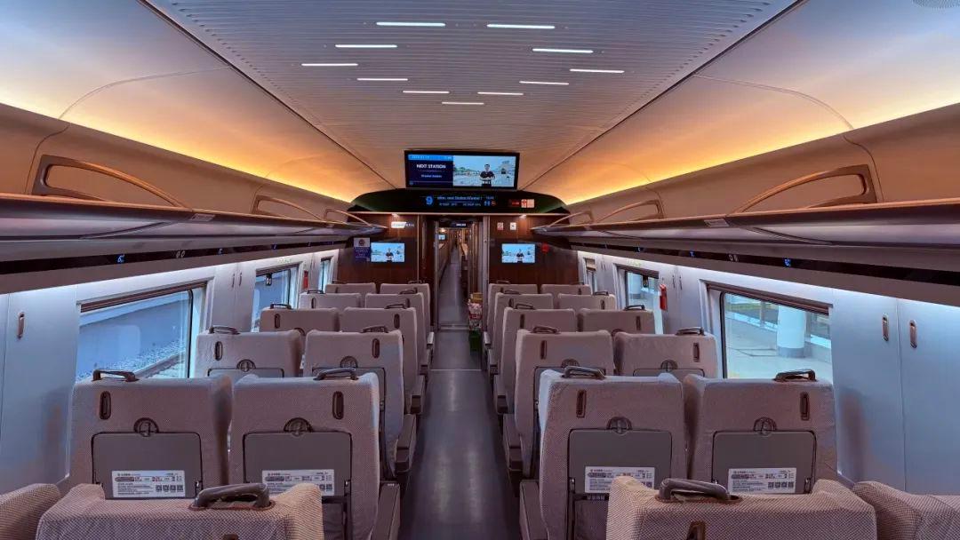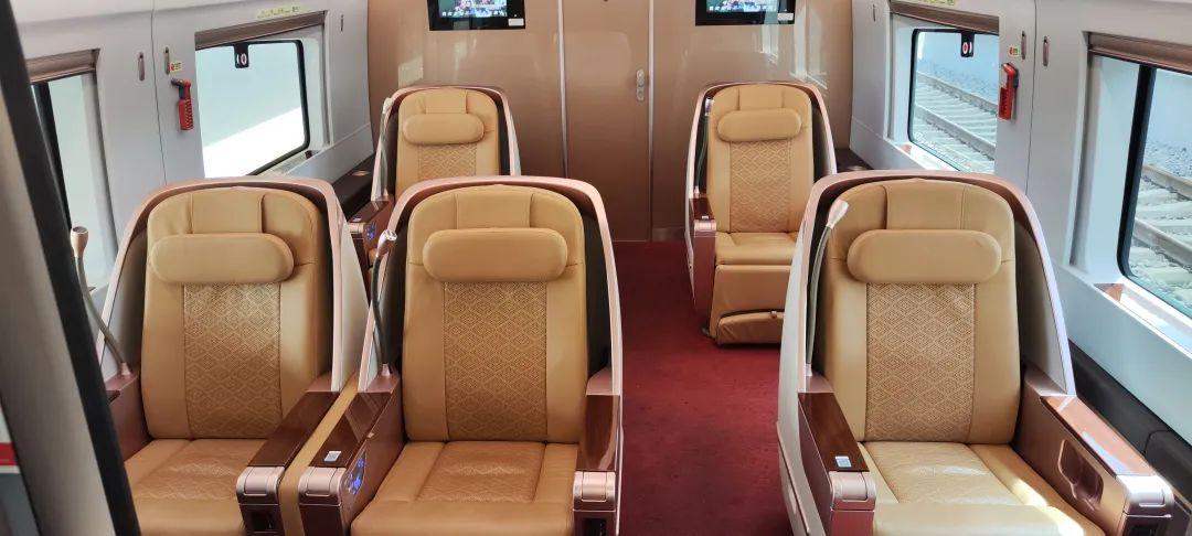 以復(fù)興號智能動(dòng)車組為例:二等座通常采用“3+2”式排列,從左到右依次是ABCDF,A和F靠窗,C和D靠過道,B座位于A和C座位中間。