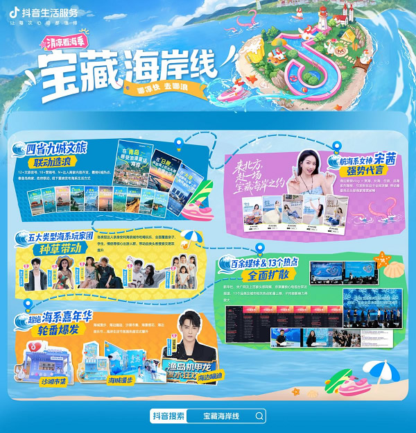 當(dāng)海浪與城市共鳴,當(dāng)流量與體驗(yàn)共振,抖音生活服務(wù)聯(lián)合四省九城打造了一場「寶藏海岸線」文旅盛宴,交出了一份令人矚目的答卷。從政府到商家,從明星到達(dá)人,從線上種草到線下狂歡,這場以“海”為核的超級(jí)IP,不僅激活了海岸經(jīng)濟(jì)的新動(dòng)能,更重新定義了夏季海濱生活的無限可能。