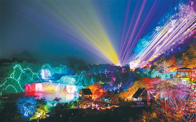 “奇妙·夜德天”沉浸式夜游景觀美輪美奐。