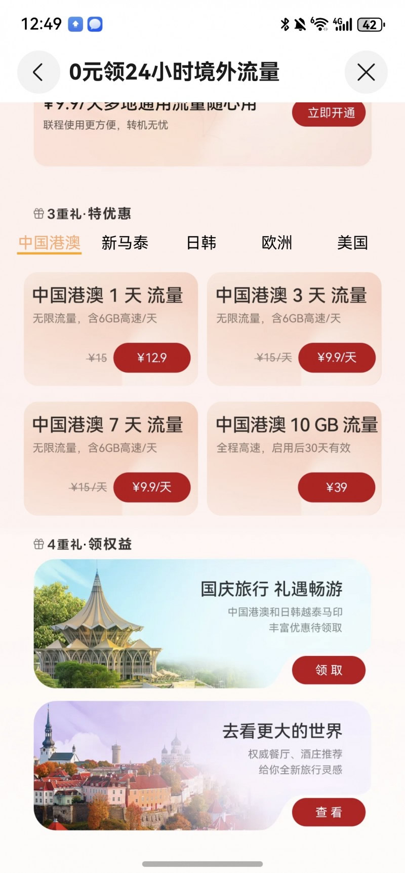 天際通「十月暢行月」第四重禮·領(lǐng)權(quán)益,天際通聯(lián)合全球合作伙伴,為用戶提供超值旅游權(quán)益包,覆蓋Grab打車、Klook景點(diǎn)門票、酒店餐飲等場(chǎng)景,在馬來西亞、泰國(guó)、歐洲等地均可享受出境專屬折扣。