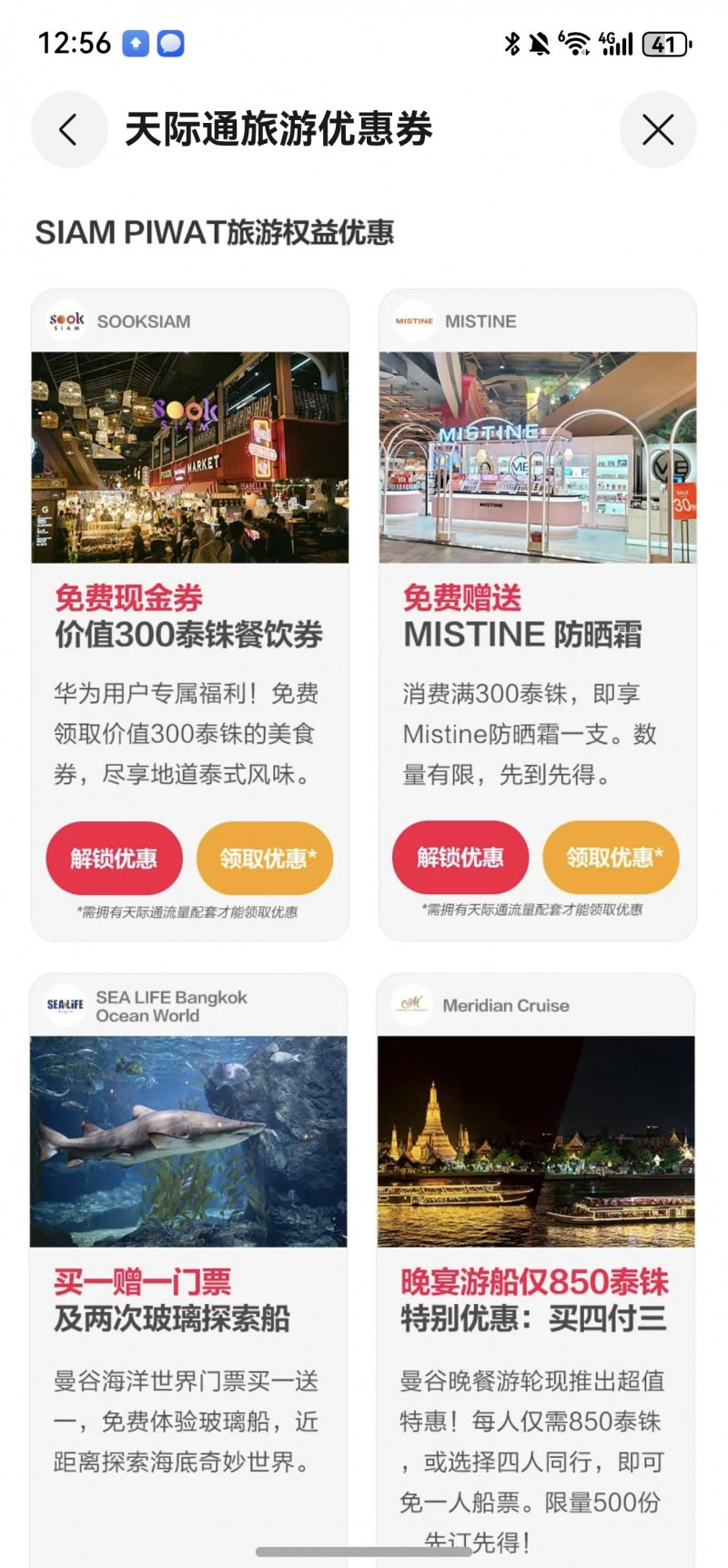 天際通不僅聯(lián)動(dòng)知名企業(yè)Grab和Klook合作,更有本地專屬權(quán)益驚喜放送。對(duì)于去泰國(guó)旅行的游客,可以免費(fèi)領(lǐng)取Siam Piwat旗下OneSiam百貨300泰銖餐飲禮品卡,該卡無消費(fèi)門檻,游客可同時(shí)參與多項(xiàng)滿減及消費(fèi)券贈(zèng)送活動(dòng)。天際通「十月暢行月」活動(dòng)還上線了本地旅游優(yōu)惠攻略,覆蓋中國(guó)香港&澳門、日韓、馬泰、越南、印尼以及歐洲。