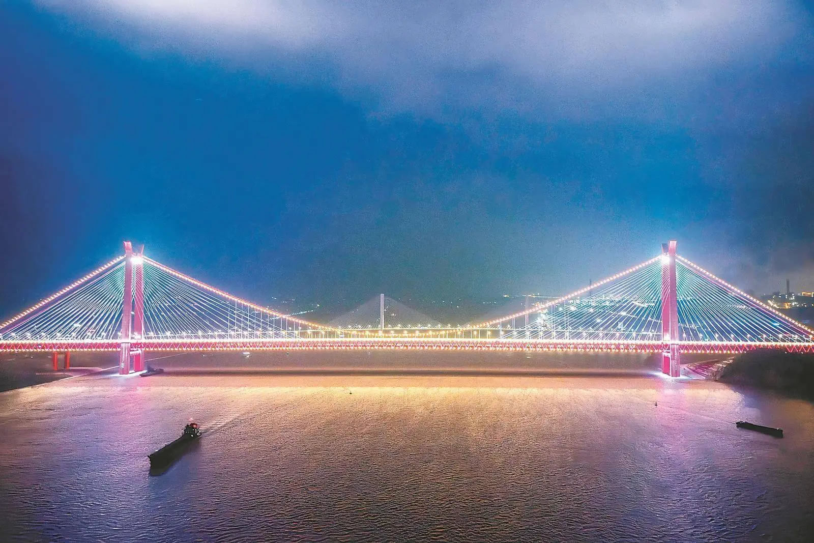 10月21日晚,銅陵長江三橋燈光璀璨。夜景照明工程技術人員已完成亮化設施安裝調試,正在對燈光效果進行最終優(yōu)化。據(jù)了解,該橋梁夜景照明工程范圍為跨江公鐵合建主橋,總長1505米,安裝了3000余盞燈具。當夜幕降臨,大橋化作江面的“光影長虹”,成為一道嶄新的風景線。(儲著傳 攝)