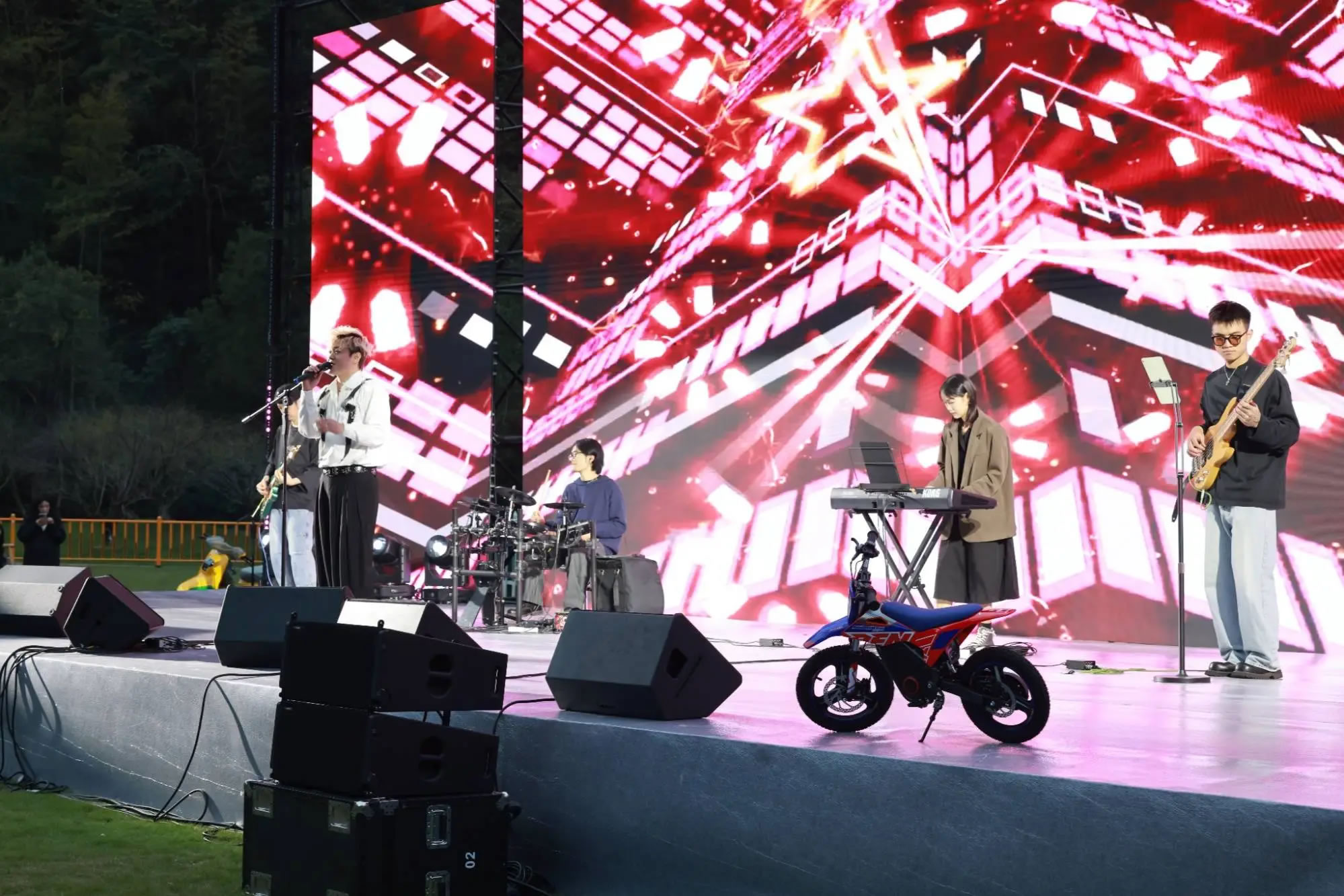 隨著機車隊伍陸續(xù)抵達(dá),十九峰大草坪迅速化身為音樂狂歡的海洋。從午后到夜晚,舞臺持續(xù)高能輸出。搖滾樂隊點燃全場熱情,流行金曲引發(fā)集體合唱。
