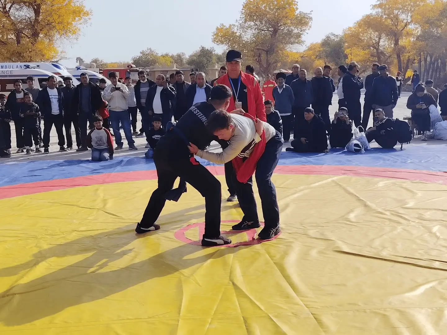 活動當(dāng)天,且力西比賽現(xiàn)場熱鬧非凡,眾多體育愛好者與游客紛紛圍攏,目光緊盯著賽場。隨著裁判一聲哨響,摔跤手們迅速進(jìn)入狀態(tài),或蹲下身子穩(wěn)步試探,或主動出擊鎖住對方肩膀。抱腰、絆腿、過肩摔……一系列技巧動作如行云流水,剛勁有力又不失靈活。每當(dāng)有精彩對決上演,場邊便爆發(fā)出陣陣喝彩與加油聲,不少觀眾舉起手機(jī),記錄下這難忘的瞬間。